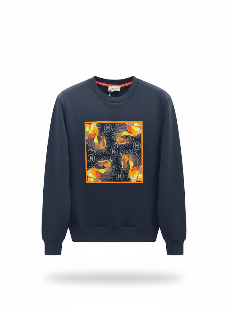 A bold statement piece built with premium comfort. This Mirror Original sweatshirt is made in Turkey using high-quality fabric that feels soft, warm, and durable. Designed in a rich navy tone, it features a standout front square graphic inspired by luxury scarf patterns — giving your outfit an elevated streetwear look with a refined artistic touch.